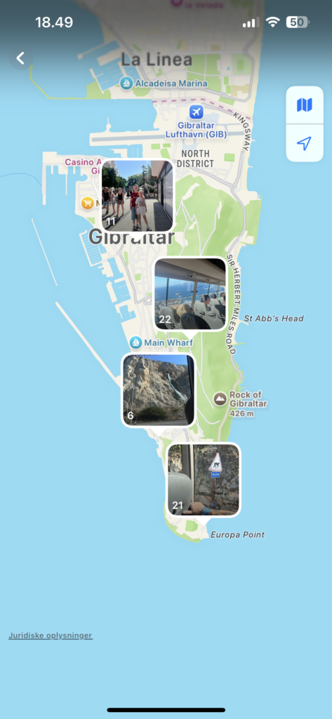Vi besøgte også den imponerende St. Michael’s Cave, en smuk drypstensgrotte, som virkelig gjorde indtryk. Her – og flere steder på klippen – kom vi helt tæt på de legesyge og nysgerrige Gibraltaraber. Aberne er en vigtig del af Gibraltars identitet og har endda hver deres eget “CPR-nummer”, da de officielt betragtes som ægte Gibraltar-indbyggere.