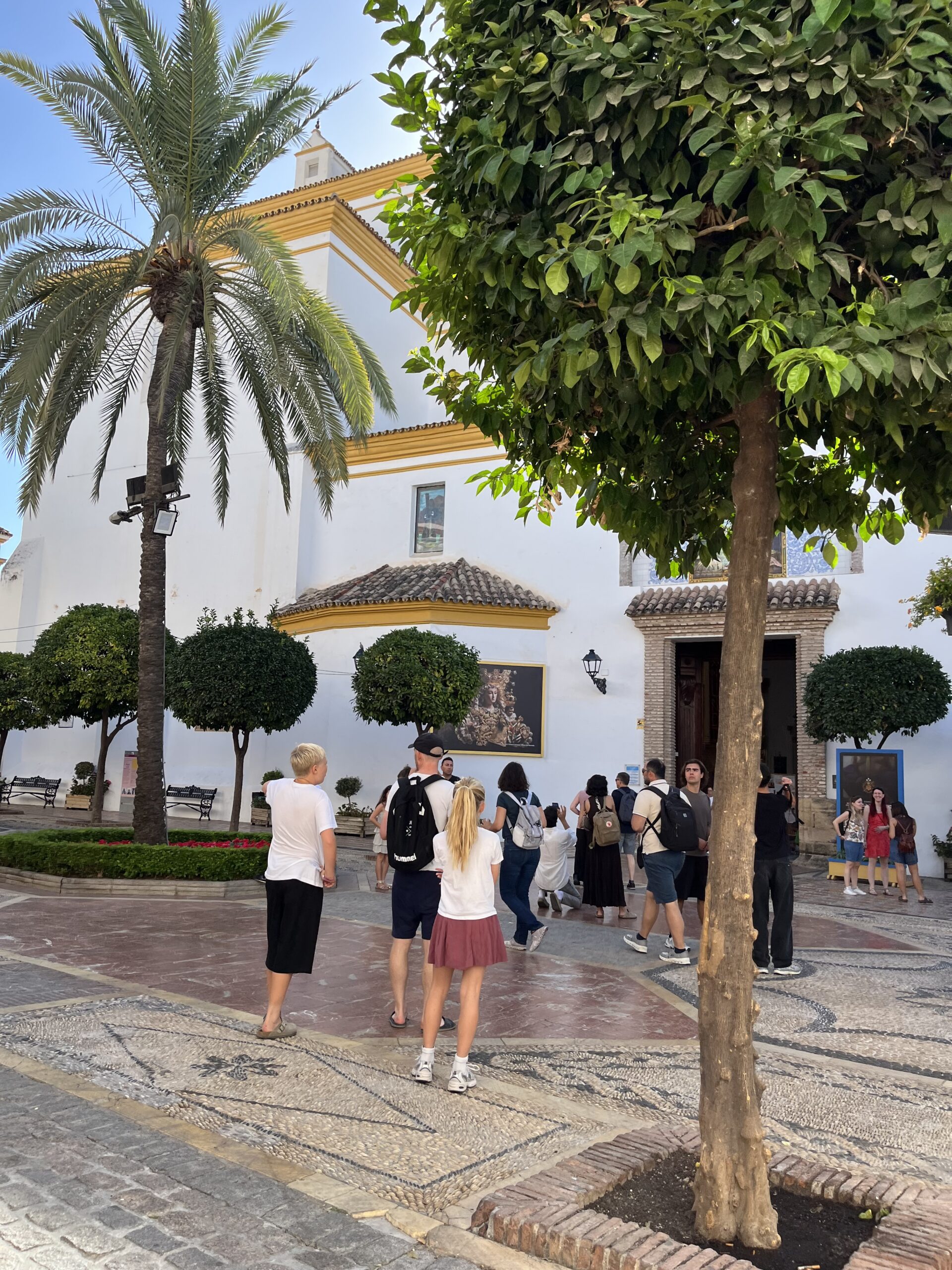 Den gamle bydel i Marbella var en fantastisk oplevelse. Vi besøgte kirken, gik forbi skolen og fik et lille indblik i de lokale skoleelevers hverdag. Det var hyggeligt at gå rundt i de smalle, snoede gader, beundre de smukke hvidkalkede huse og mærke den rolige og afslappede stemning, som præger området. Samtidig var der masser af smukt kunsthåndværk at kigge på og købe.