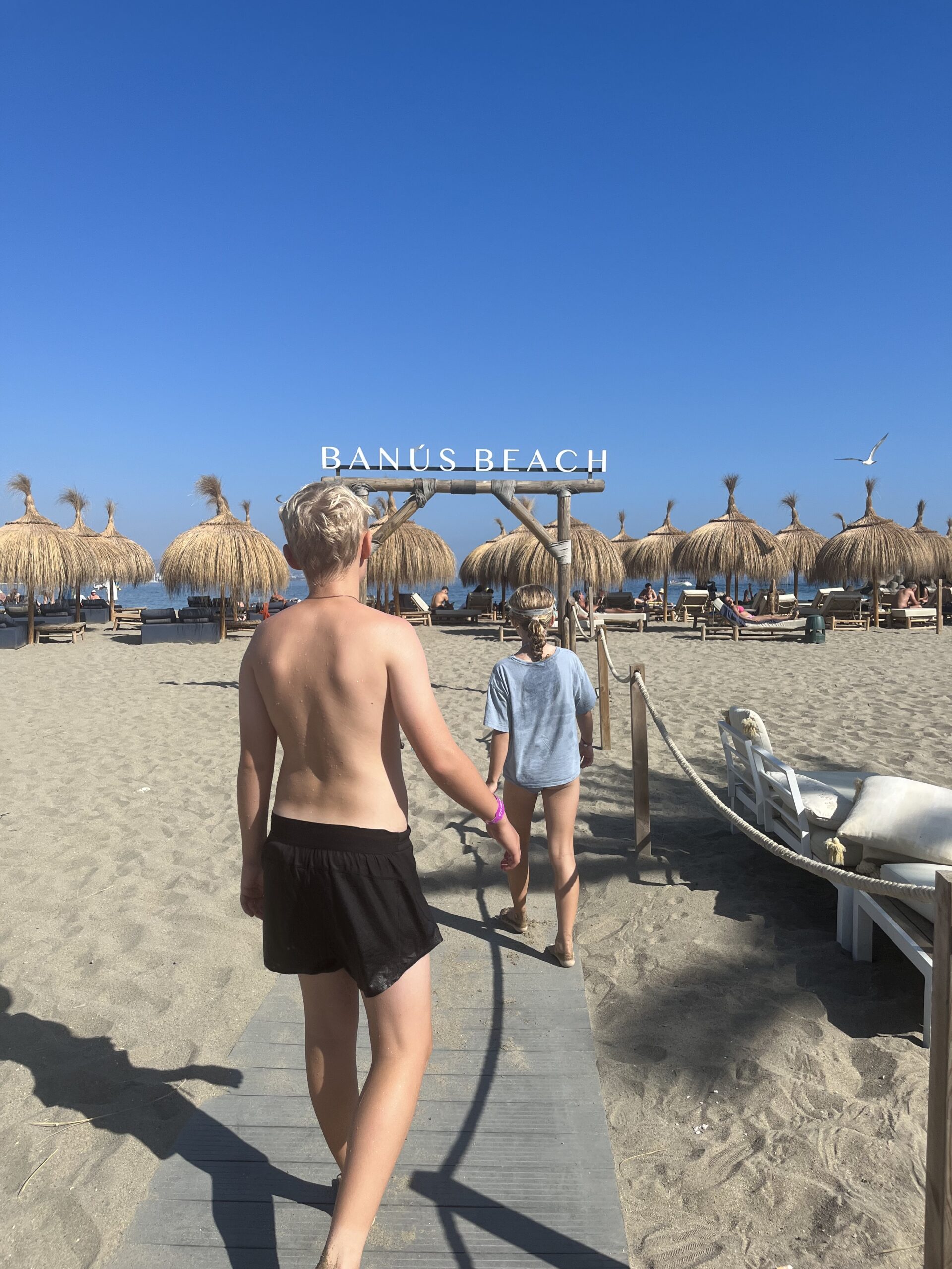 Dag 6 brugte vi på at vende tilbage til Banús Beach og Puerto Banús – et sted, man nemt kan besøge flere gange uden at blive træt af det. Denne dag var præget af høje bølger og frisk vind, hvilket gav stranden en helt anden stemning end tidligere på ferien.