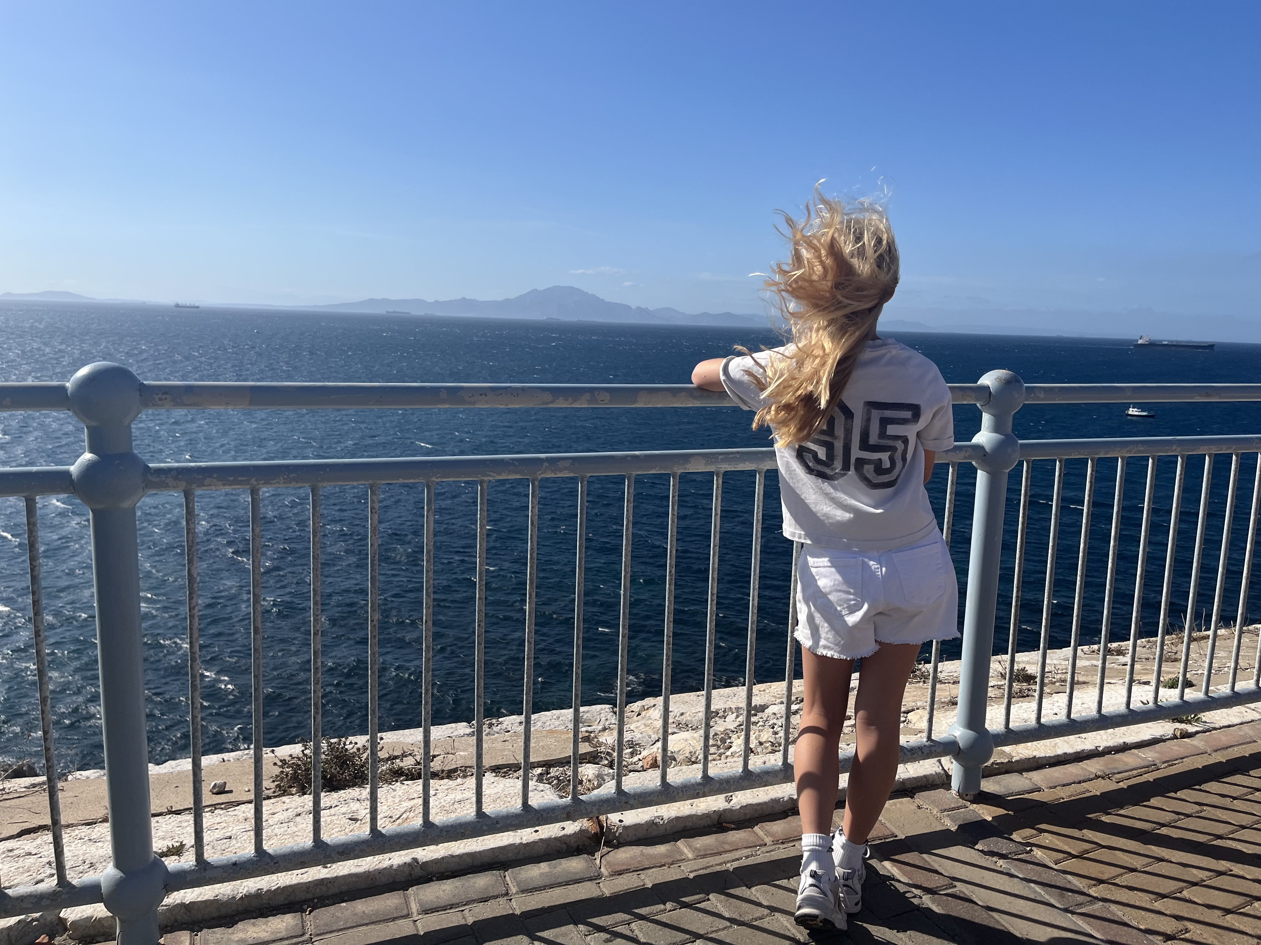 Vi havde oprindeligt overvejet en endagstur til Tanger i Afrika, men fik det frarådet, da det kræver mere tid for at få den fulde oplevelse. Det blev derfor gemt til en anden gang – og en rigtig god grund til at vende tilbage 😉 Til gengæld var vi heldige med vejret og fik et flot, skyfrit kig til Afrika fra Harding’s Battery ved Europa Point.