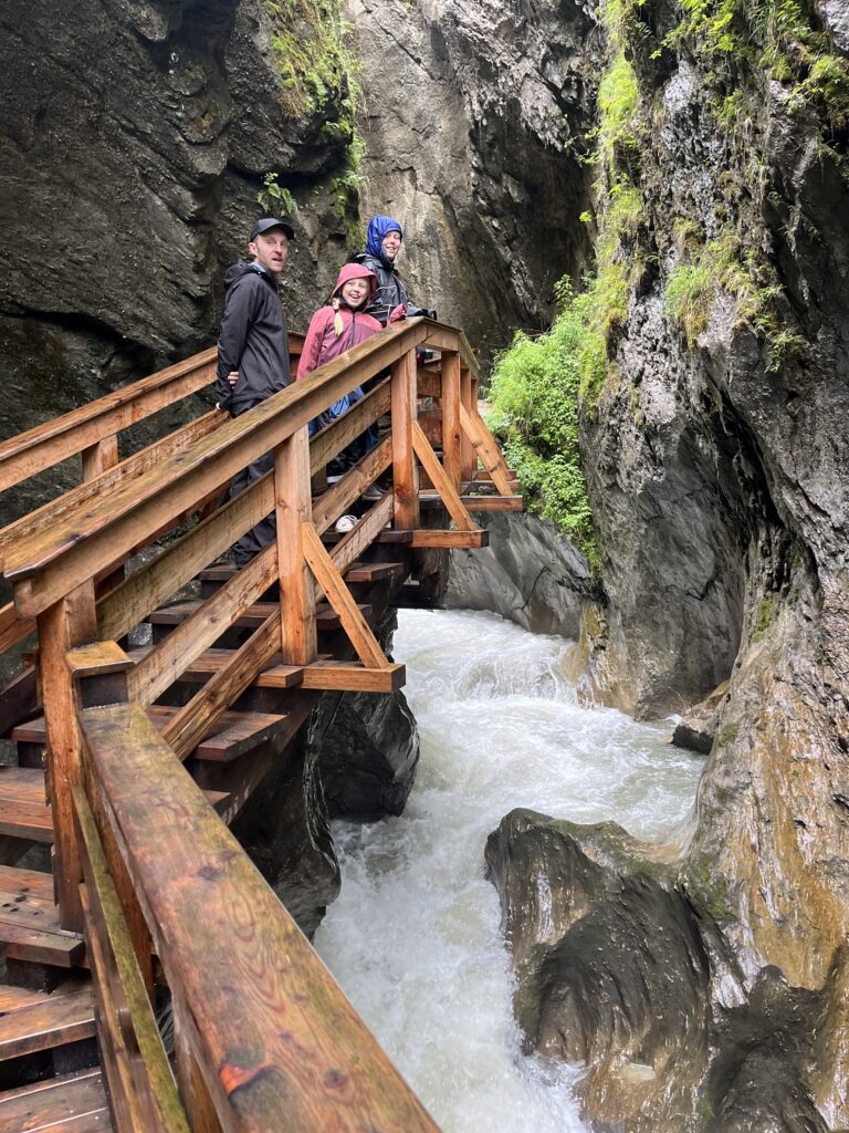 Vejret var igen lidt ustadigt, så vi besluttede os for en udflugt til Kaprun for at opleve Sigmund Thun Klamm. Det er en dramatisk kløft med brusende vand, stejle klipper og en gangbro, der snor sig gennem landskabet. Selvom det regnede let, gjorde det bare oplevelsen endnu stærkere. Man kunne virkelig mærke naturens kræfter, når vandet brusede forbi under fødderne og regnen blandede sig med sprøjtene fra floden. Læs mere her: https://www.klamm-kaprun.at/en/