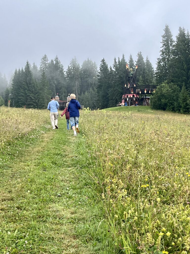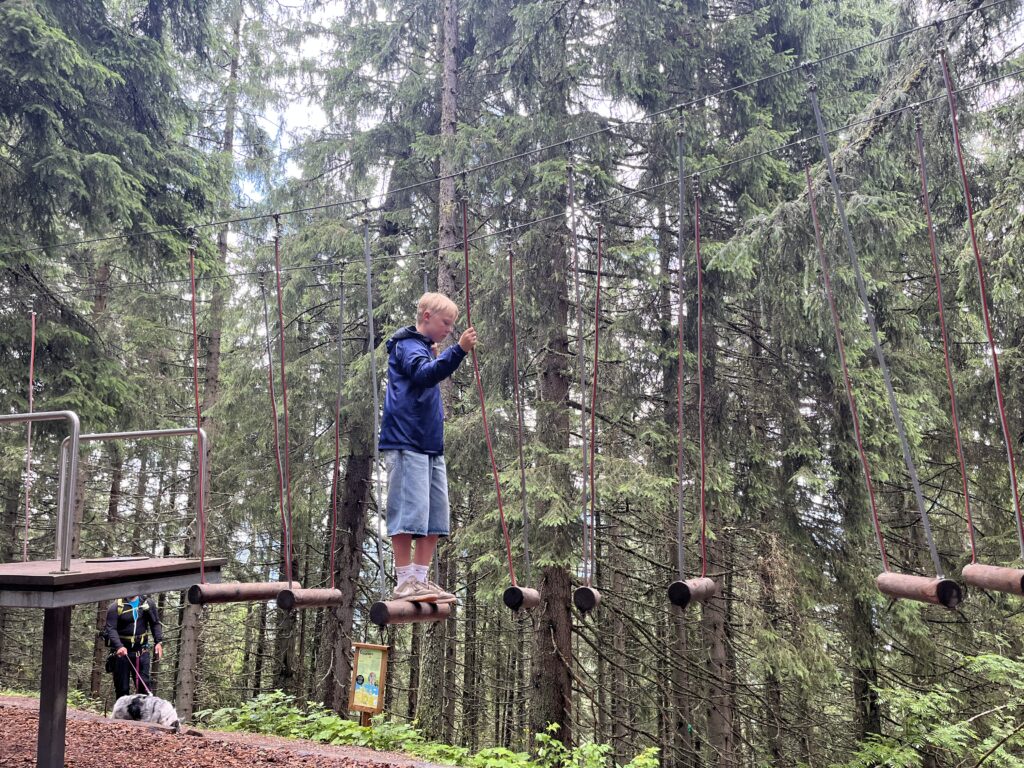 På ruten ned af bjerget gennem skoven prøvede børnene kræfter med balancebaner, klatrenet og små udfordringer, der var placeret med jævne mellemrum. Det gjorde turen både sjov og aktiv, og gav plads til leg i naturen. Læs mere her: https://www.schmitten.at/en