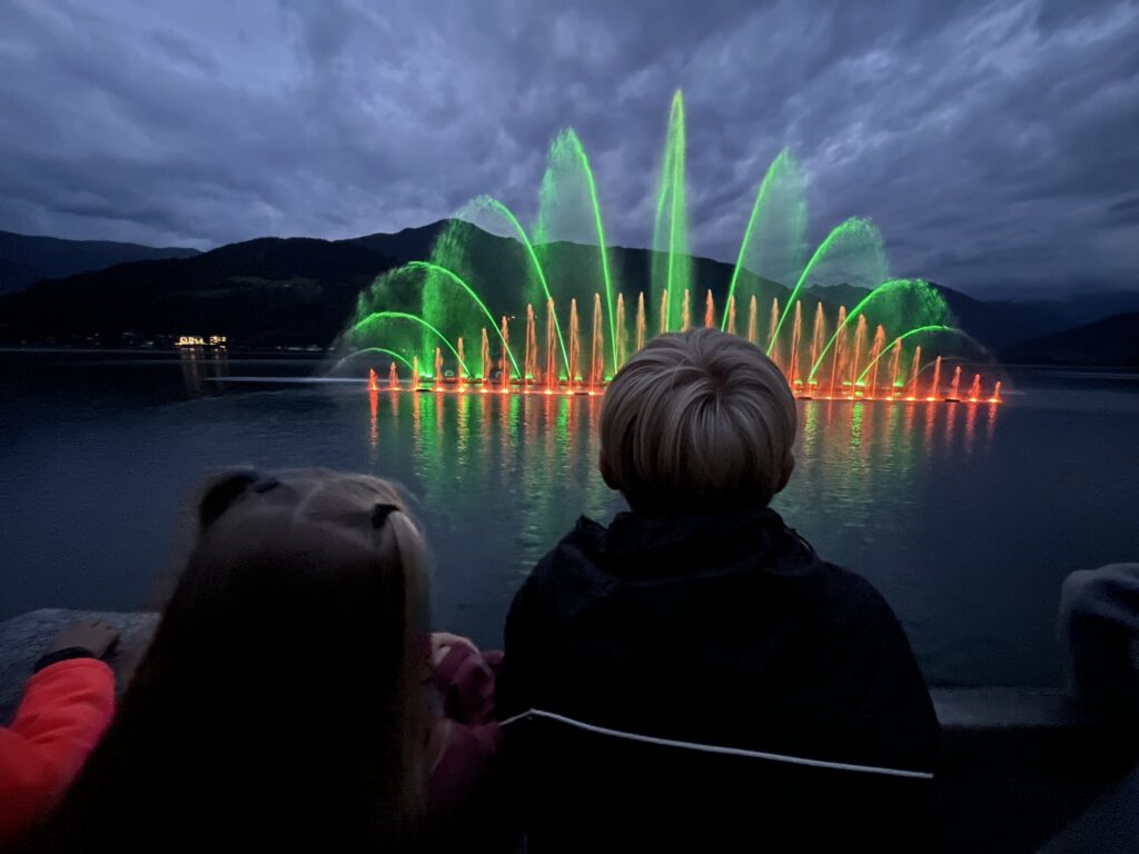 Vi rundede det hele af med at se det berømte vand- og lysshow ved Elisabeths Plads (Elisabethpark) ved søbredden. Det var en smuk oplevelse, hvor springvandets bevægelser blev akkompagneret af musik og lys i mørket – en magisk og rolig afslutning på endnu en dejlig ferie.